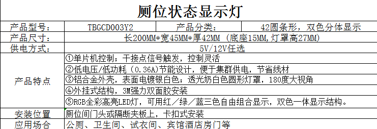 智慧厕所有人无人显示屏 有人无人指示灯(圆形双色分体)