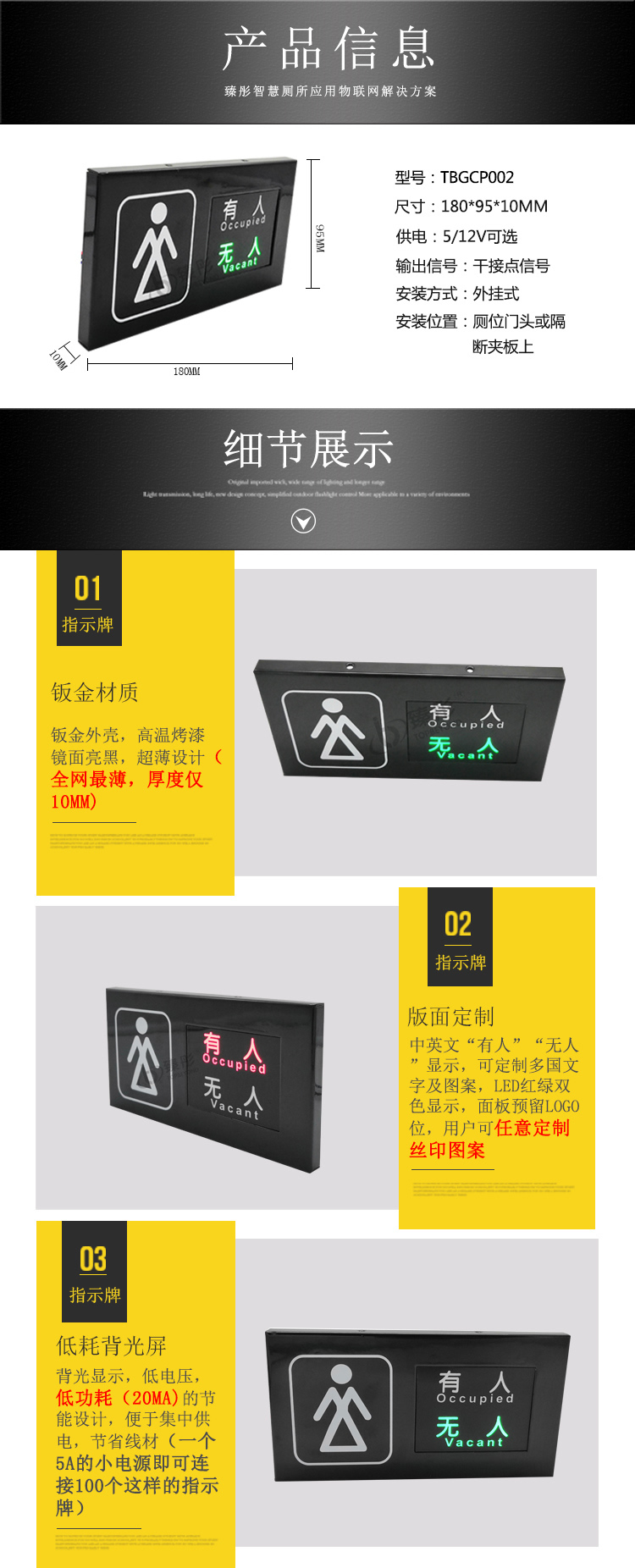智慧公厕有人无人显示屏男女图标厕所厕位状态信息指示牌钣金外壳