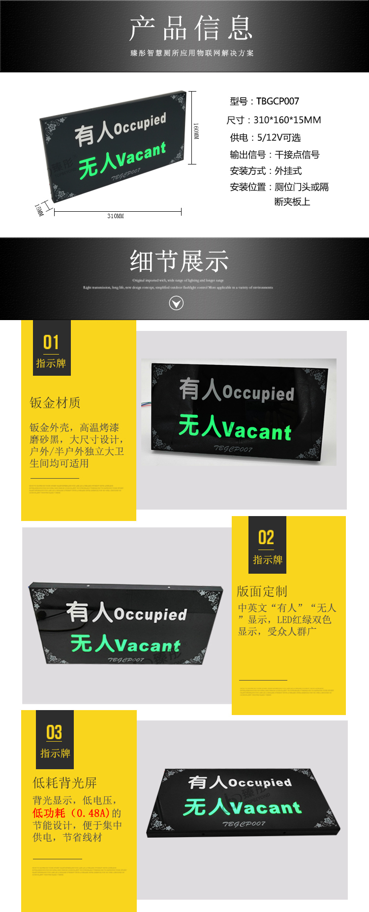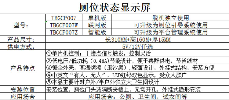 智能厕所有人无人第三卫生间指示牌 厕位状态信息显示双色指示灯