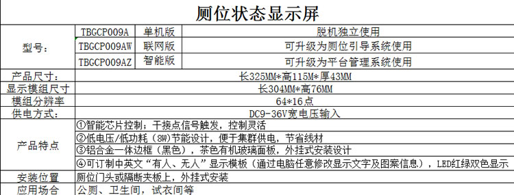 智慧公厕系统有人无人滚动显示屏 010款厕位状态显示屏 LED指示灯