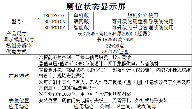 智慧公厕系统有人无人滚动显示屏 010款厕位状态显示屏 LED指示灯